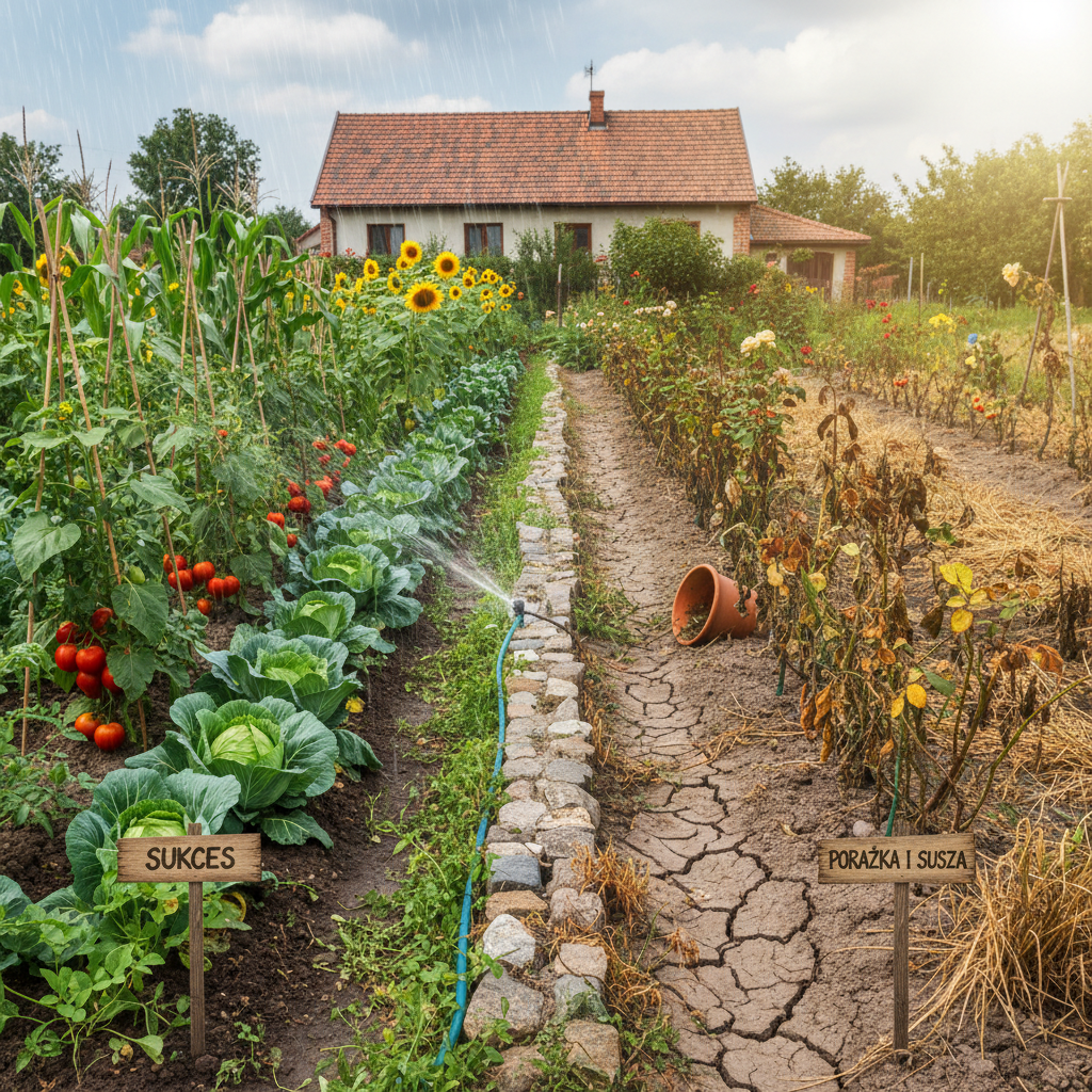 - Tworzenie „kręgów życia” – wokół korzeni wykładanie kamieni dla zatrzymania wilgoci. > „Czasami trzeba zaryzykować – stary ręcznik uratował mi ogórki, a doniczka z wodą przetrzymała jabłoń przez 10 dni bez deszczu.”