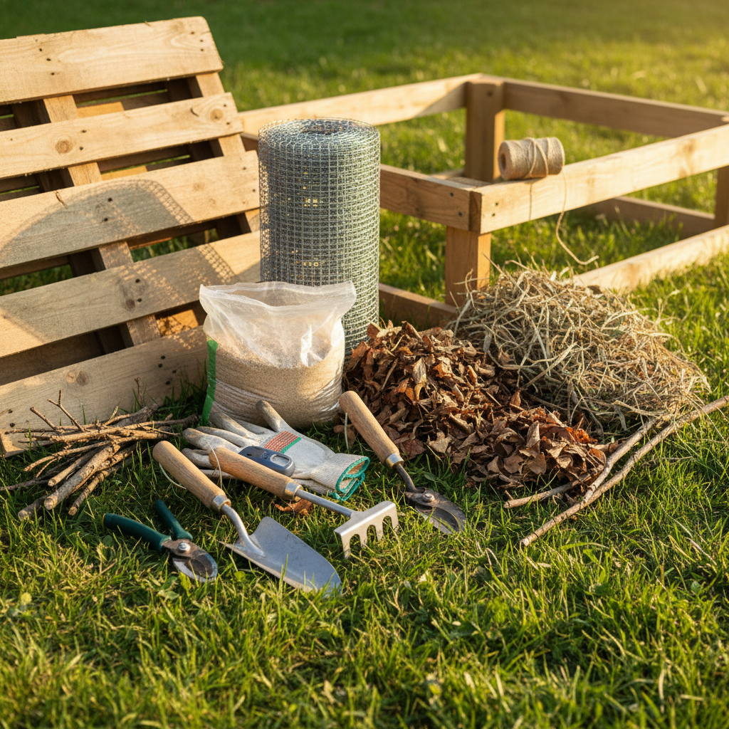 - W zbyt ciasnym kącie — brak dostępu utrudnia mieszanie i kontrolę wilgotności. Najlepsza lokalizacja to kompromis: dostępny, ale dyskretny, zacieniony, ale przewiewny. Zadbaj też o to, by podłoże było przepuszczalne — żaden plastikowy ruszt nie zastąpi naturalnego kontaktu z ziemią. ### Materiały i narzędzia: co naprawdę jest potrzebne Nie daj się zwariować marketingowi. Do zbudowania skutecznego kompostownika potrzebujesz kilku rzeczy: - Palety drewniane lub deski (najlepiej z odzysku — eko i tanio)