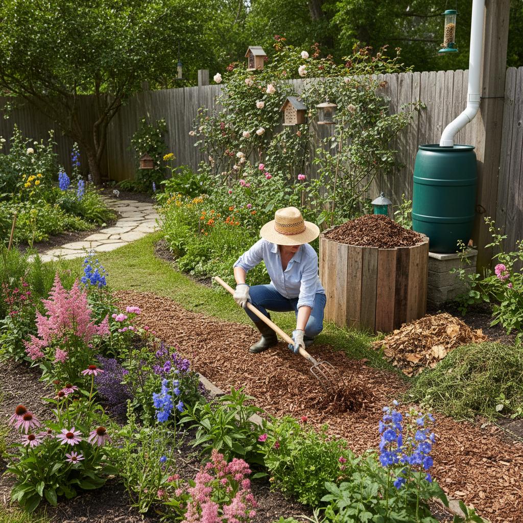 - Ściółkowanie – ogranicza parowanie wody i utrzymuje równą temperaturę gleby.